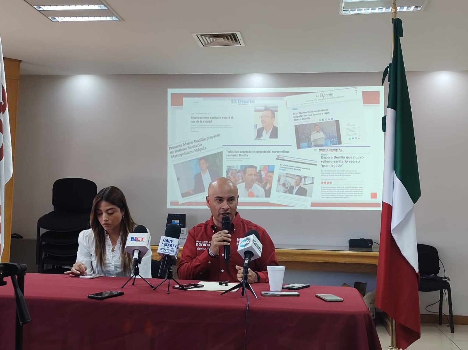 Chihuahua, Chih.- En una conferencia de prensa esta mañana, el candidato de la coalición ‘Sigamos Haciendo Historia en Chihuahua’ (MORENA-PT), Miguel La Torre Sáenz, lanzó fuertes acusaciones contra el alcalde con licencia y candidato a la Alcaldía por el PAN-PRI-PRD, Marco Antonio Bonilla Mendoza, relacionadas con el proyecto de un nuevo relleno sanitario en la región.