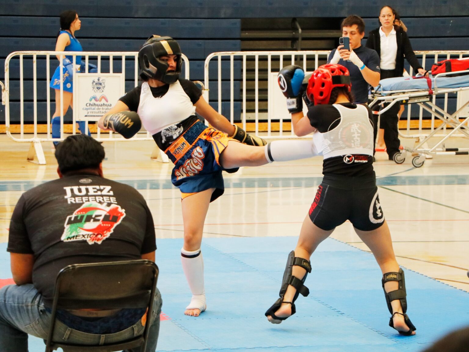 Con tres escenarios simultáneos, dos en tatami y ring de boxeo al centro del gimnasio se desarrollaron los combates de kick boxing tradicional, en categorías desde pollitos de cuatro años de edad, hasta adultos de 40 años, en distintas divisiones de peso.