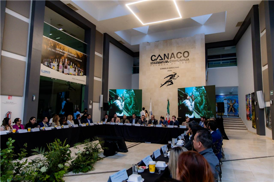 Durante su participación ante el Consejo del organismo empresarial, el edil subrayó que Chihuahua Capital se posiciona actualmente en el quinto lugar nacional en competitividad, con posibilidades de avanzar al cuarto sitio, resultado del trabajo conjunto entre gobierno, iniciativa privada y sociedad.