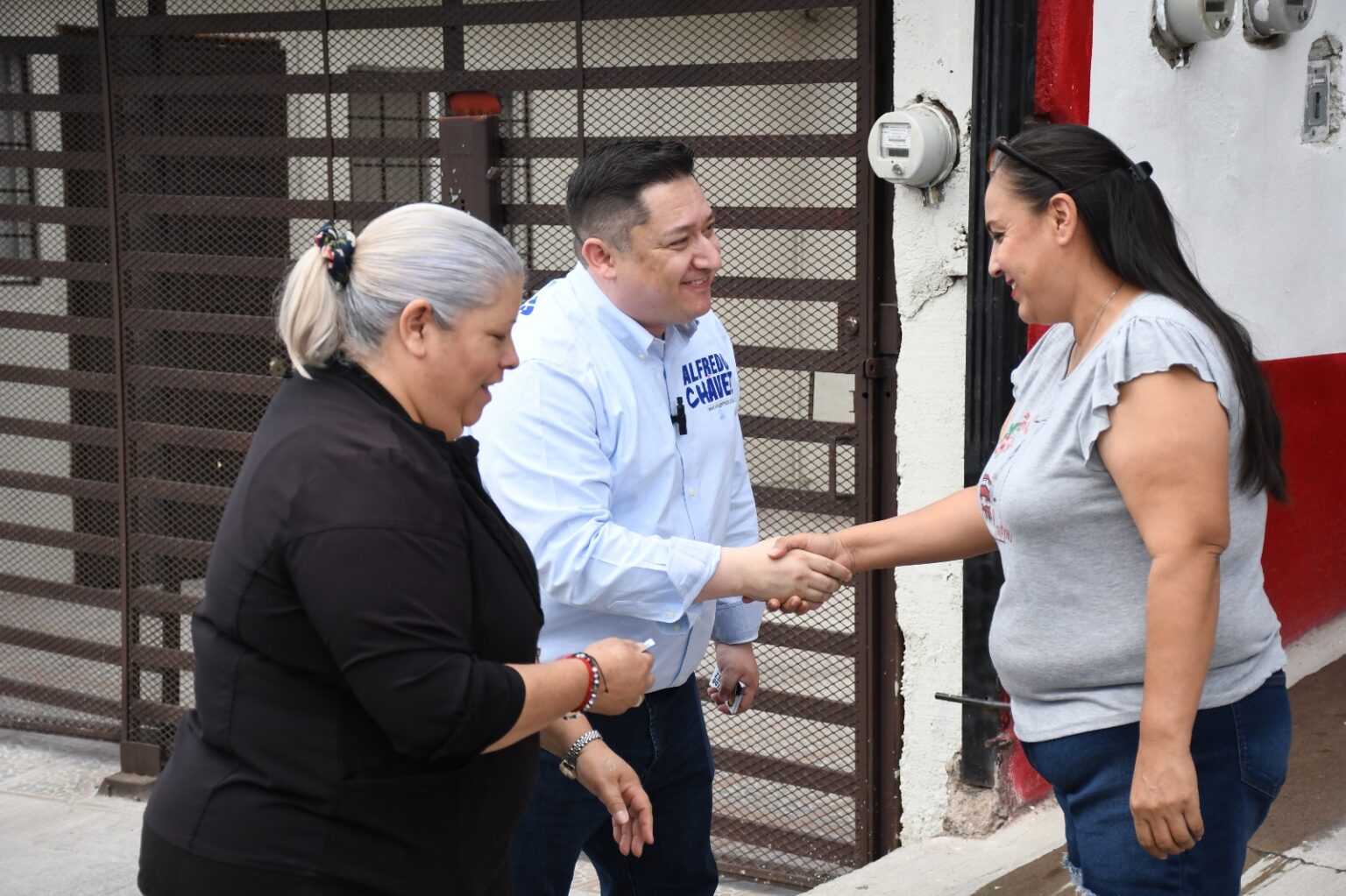 Como parte de las actividades de campaña, el candidato por el Distrito 18 por la coalición Juntos Defendamos a Chihuahua, Alfredo Chávez, estuvo junto a su equipo en el crucero del Periférico de la Juventud y Francisco Villa, para solicitar el apoyo de los automovilistas este próximo 2 de junio, junto a la candidata por el Distrito 06 Federal Manque Granados y su fórmula, Ale Enríquez.