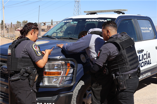 Personal de despliegue grupos especiales, inteligencia, cadetes y personal administrativo, por instrucción del comisario Julio Salas participan de manera coordinada para reforzar la atención preventiva y de respuesta ante cualquier emergencia a las familias chihuahuenses.