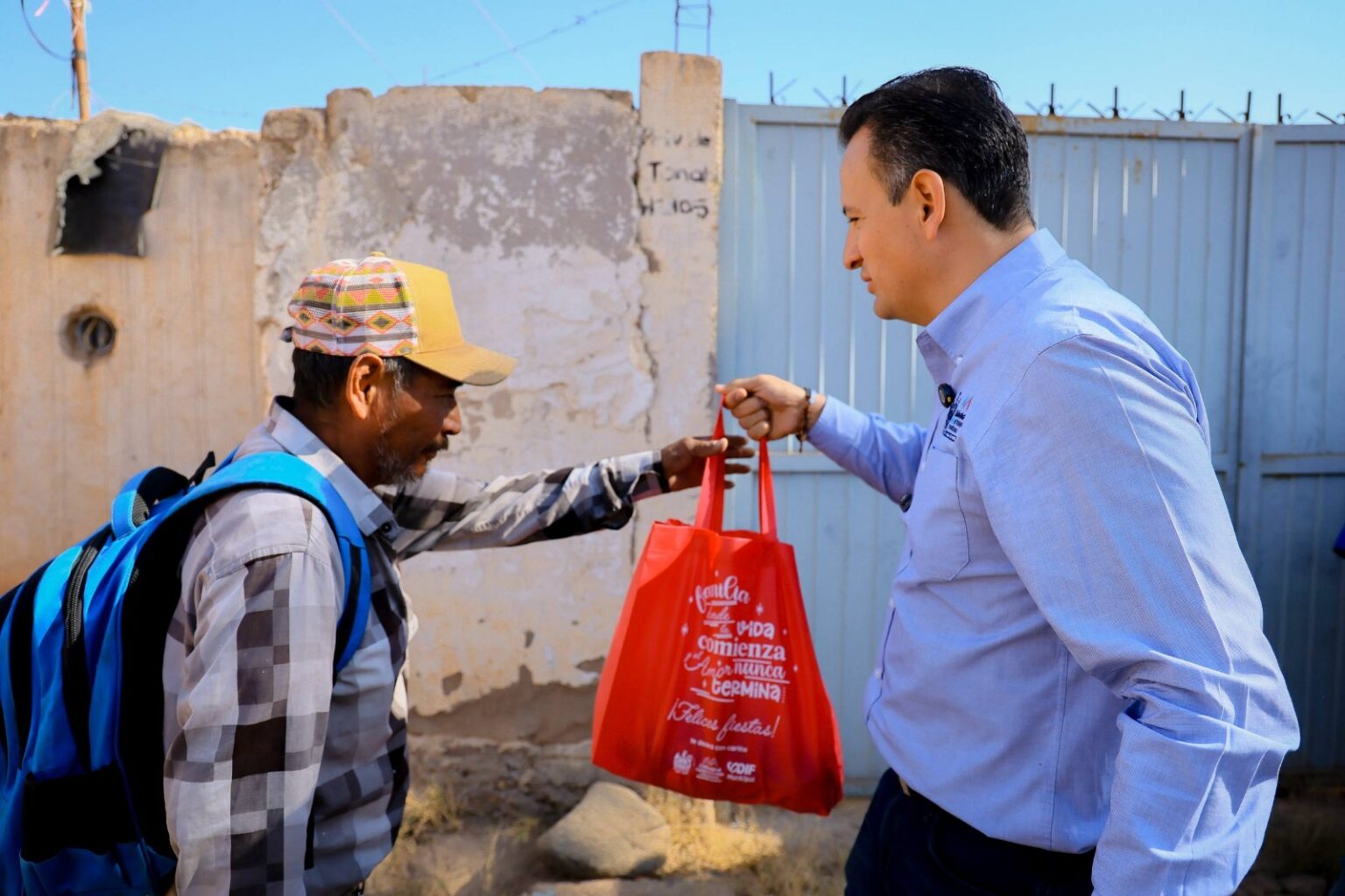 Como parte del compromiso del DIF Municipal de atender a las familias vulnerables de la ciudad, el alcalde Marco Bonilla y su esposa Karina Olivas, iniciaron con la entrega de cenas navideñas a las familias de la colonia Crucero, al sur de la ciudad.