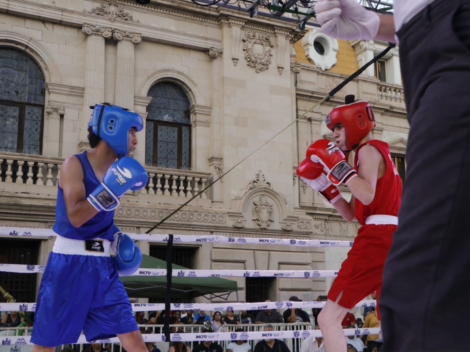 Chihuahua, Chih.- Ante cientos de espectadores que se concentraron en Plaza de Armas, el Gobierno Municipal de Chihuahua, a través del Instituto Municipal de Cultura Física y Deporte, llevó a cabo la serie peleas finales del torneo municipal “Box de Barrios” 2024.