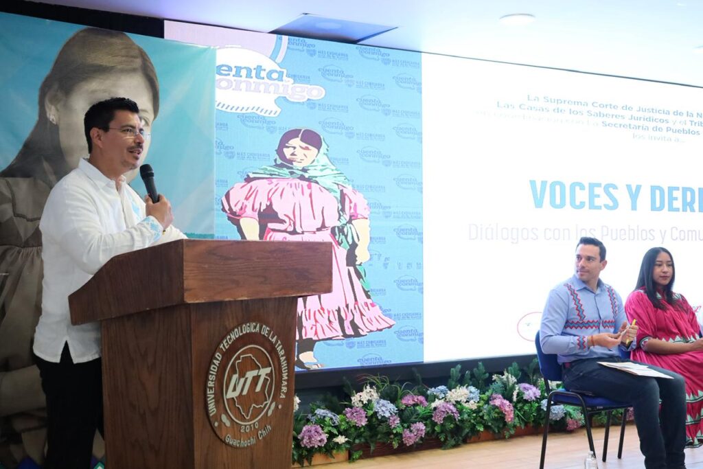 En el recinto de las instalaciones de la Universidad Tecnológica de la Tarahumara, en Guachochi, Chihuahua, se llevaron a cabo el pasado viernes 27 de marzo, las mesas de diálogo “Voces y Derechos: diálogos con los Pueblos y Comunidades Indígenas”, ante decenas de personas pertenecientes a pueblos originarios de la entidad.