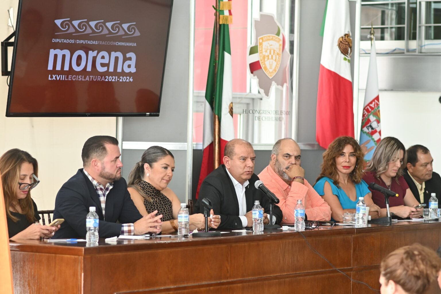 En rueda de prensa, los diputados de morena manifestaron su total respaldo a los padres de familia y los maestros que convocaron a las familias chihuahuenses, a defender la educación pública, obligatoria, laica y gratuita, para que se entreguen libremente los libros de la Secretaría de Educación Pública.
